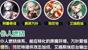 - 艾梅莉埃提升胡桃攻击力和重击伤害,香菱增强火元素输出,班尼特提供攻击力加成和回血。此阵容爆发极高,能迅速清理敌人。