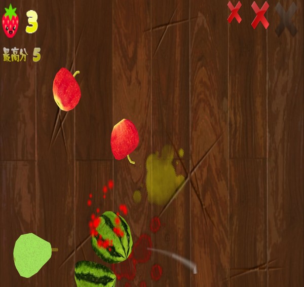 1. 切割水果的轨迹要精准,这样才能保证水果被完整切开,获得更高分数。