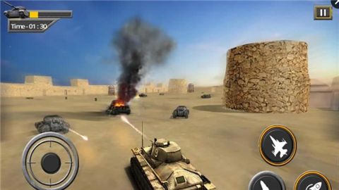 1. 玩家通过虚拟摇杆控制坦克移动,点击屏幕发射炮弹。