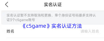 在c5game平台进行游戏相关活动,实名认证是一项重要步骤。它不仅关乎账号安全,也能保障平台运营的规范性。那么,c5game怎么实名认证呢?